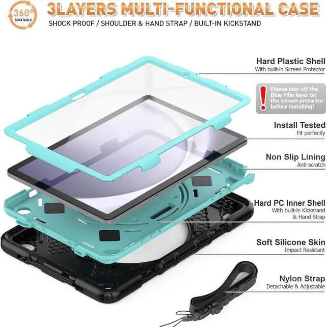 Drop Proof & Protector This Case for Galaxy Tab A9 Plus is Designed to Protect! With durable anti shock material, soft silicone, hard shell cover and built-in screen protector. Full body sturdy Tab A9 Plus case can keep your Tablet safe from shock, drop, scratch or accidental damages in daily use.