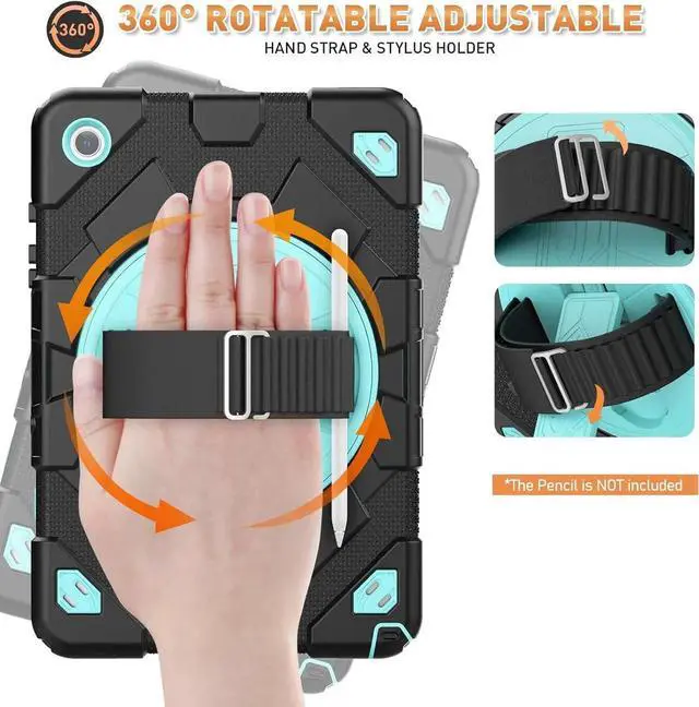 • Upgraded Hand Strap & Stand The upgraded strap has more adjustable positions, both kids and adults can use it, also easy to hold the Tablet by one hand and find the most comfortable viewing angle you need. The rotating stand provides a stable support, you can change it to viewing/drawing/typing angles you need, and it can be folded up when not in use.