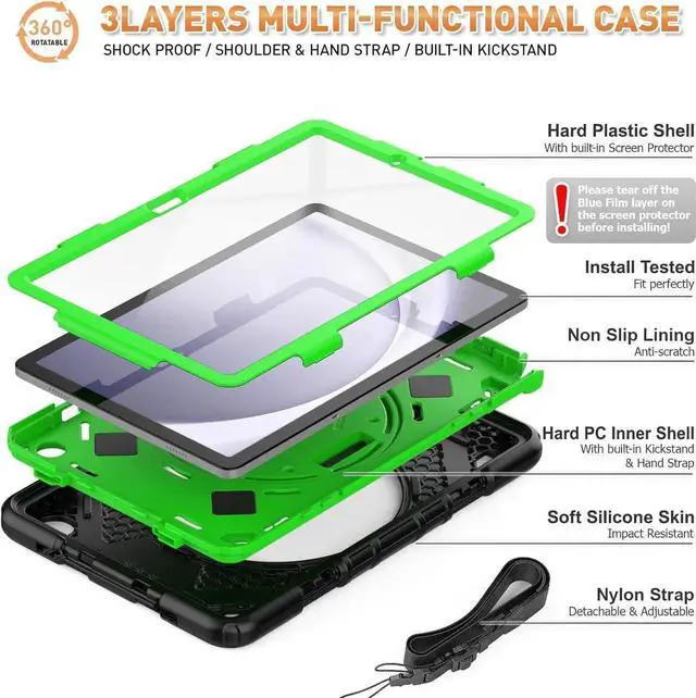 Drop Proof & Protector This Case for Galaxy Tab A9 Plus is Designed to Protect! With durable anti shock material, soft silicone, hard shell cover and built-in screen protector. Full body sturdy Tab A9 Plus case can keep your Tablet safe from shock, drop, scratch or accidental damages in daily use.