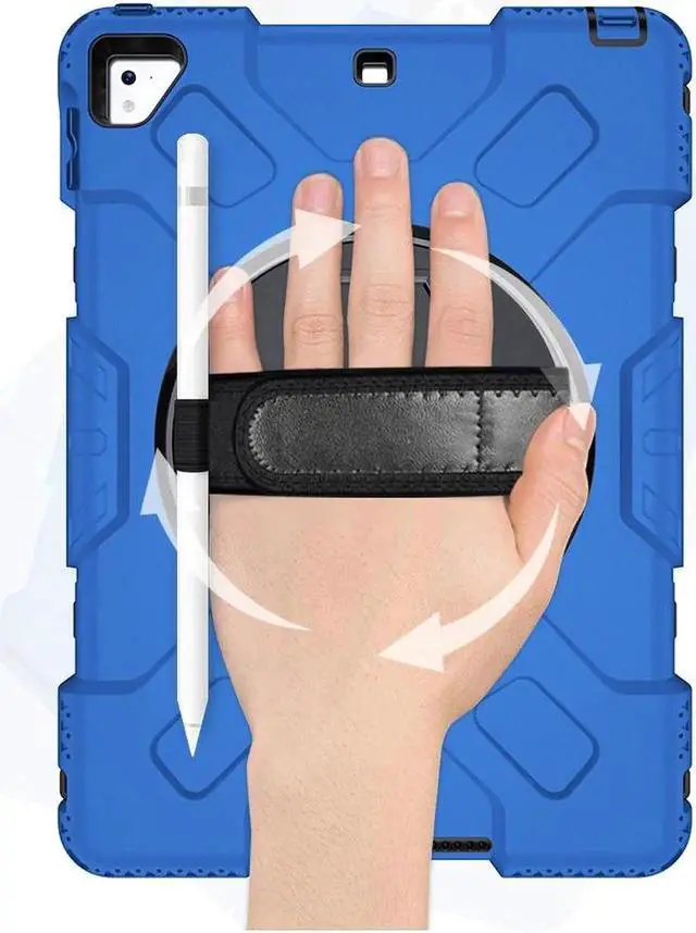 • 360° Rotating Hand Strap & Stand: The Protective Apple iPad Pro 9.7 inch & iPad Air 2 Case Built-in 360° Rotatable Hand Strap & Kickstand on the back, flexible in Vertical & Horizontal any other angles ideal for watching video, reading or teaching, maximinzely free your hand.Adjustable Hand Strap perfectly suitable uses for all size of hands, adults, students, child