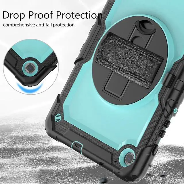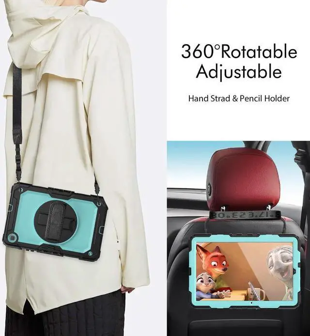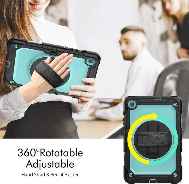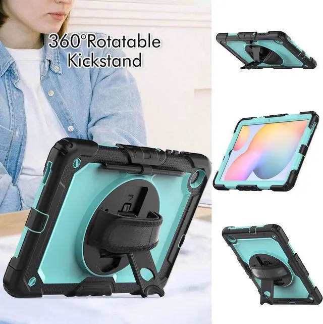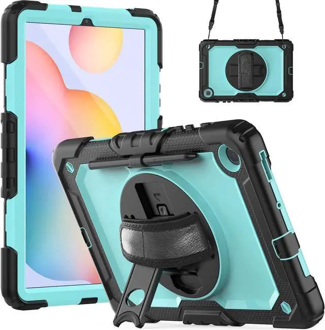 Hand/Shoulder Strap: The Galaxy S6 Lite Case has a rotating hand strap at the back that doubles as a convenient stand solution. Its got a convenient 360-degree rotating swivel that allows you to position the tablet vertically and horizontally for reading or viewing. There is also a shoulder strap to let you or your kids carry the SamSung S6 Lite Tablet easily without the need to keep your hands busy.