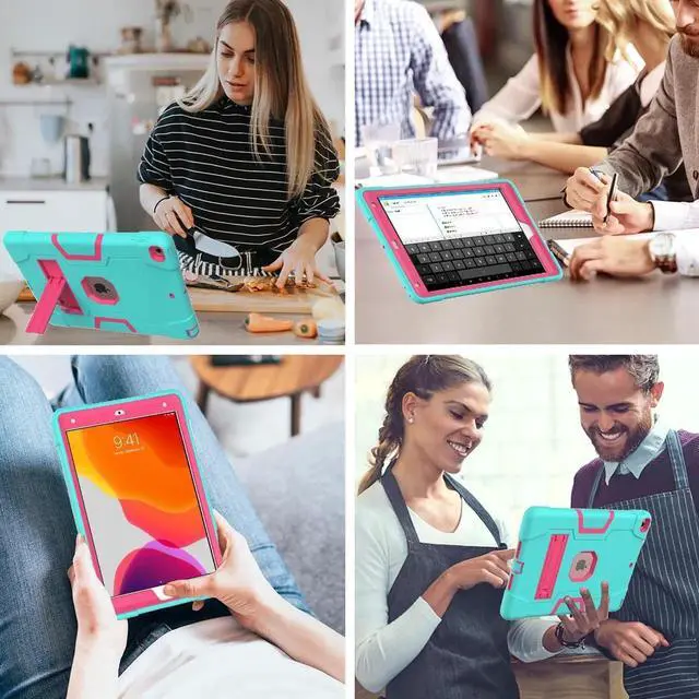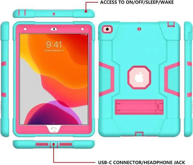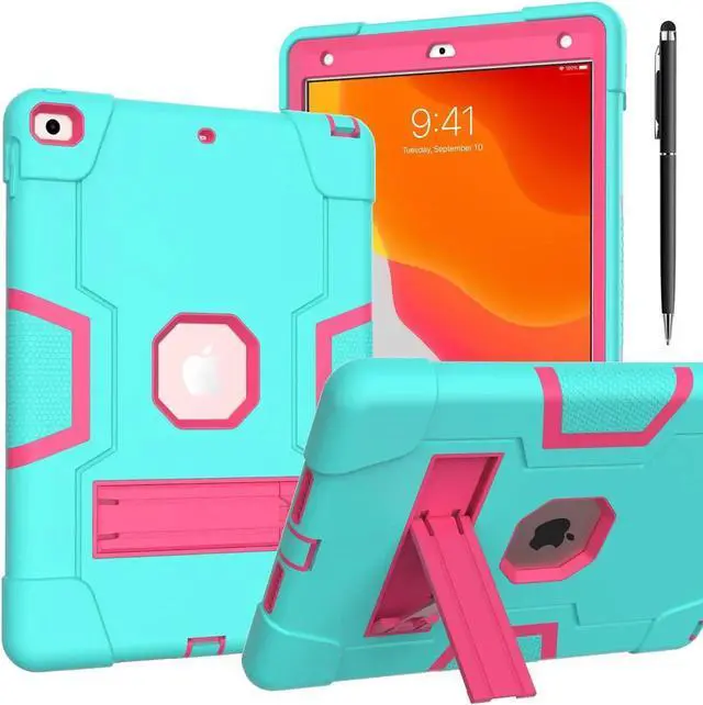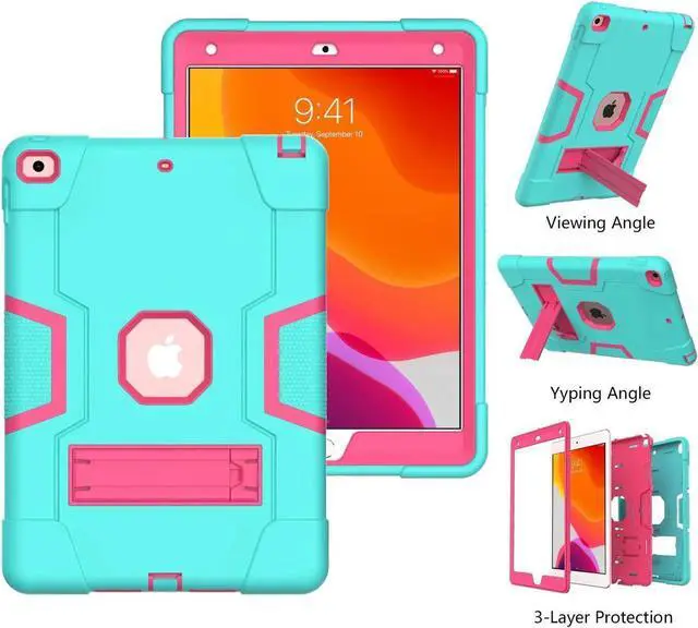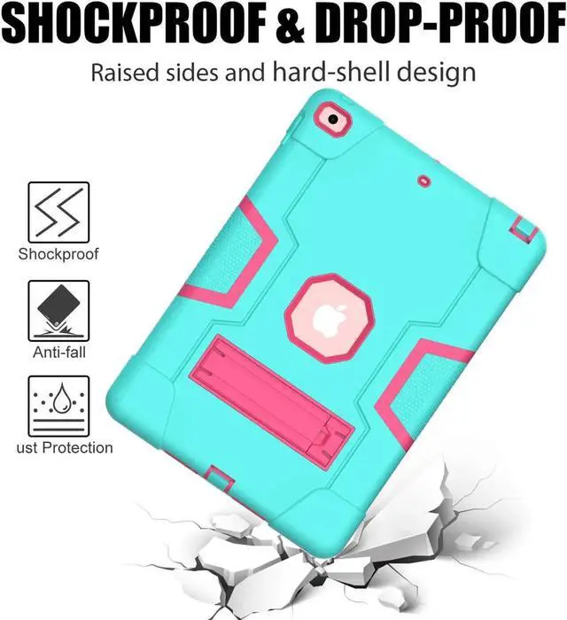 Full Body Protection & Premium Materials --- This iPad case is made of hard plastic frame + PC inner shell + durable soft Silicone (NO screen protector), the safe materials are also friendly to kids. 3-layer full body protection structure, which provides perfect protection for your iPad against drop, scratch, shock and dust.