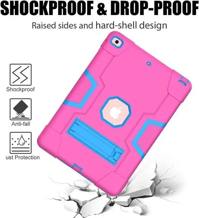 Full Body Protection & Premium Materials --- This iPad case is made of hard plastic frame + PC inner shell + durable soft Silicone (NO screen protector), the safe materials are also friendly to kids. 3-layer full body protection structure, which provides perfect protection for your iPad against drop, scratch, shock and dust.