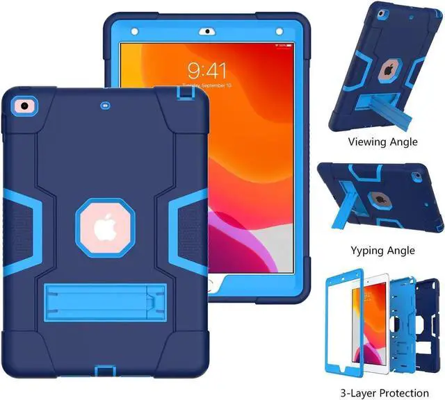 Full Body Protection & Premium Materials --- This iPad case is made of hard plastic frame + PC inner shell + durable soft Silicone (NO screen protector), the safe materials are also friendly to kids. 3-layer full body protection structure, which provides perfect protection for your iPad against drop, scratch, shock and dust.