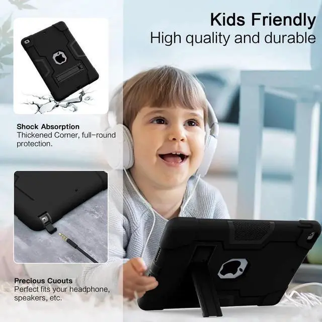Full Body Protection & Premium Materials --- This iPad case is made of hard plastic frame + PC inner shell + durable soft Silicone (NO screen protector), the safe materials are also friendly to kids. 3-layer full body protection structure, which provides perfect protection for your iPad against drop, scratch, shock and dust.
