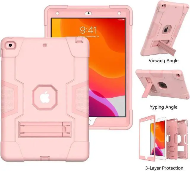 Full Body Protection & Premium Materials --- This iPad case is made of hard plastic frame + PC inner shell + durable soft Silicone (NO screen protector), the safe materials are also friendly to kids. 3-layer full body protection structure, which provides perfect protection for your iPad against drop, scratch, shock and dust.