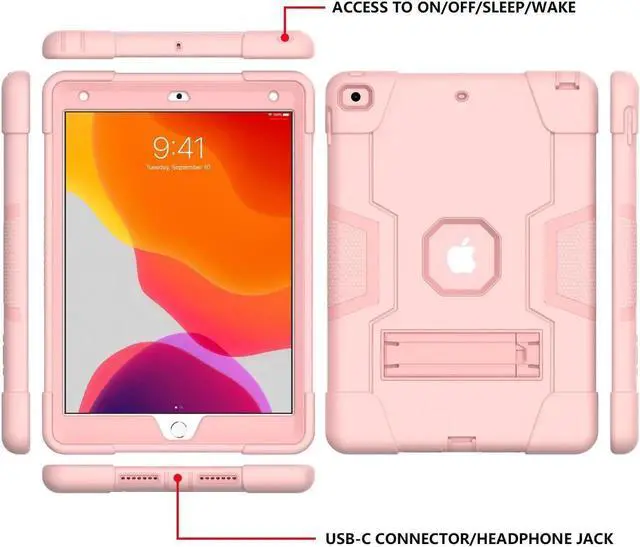 iPad Case with Built-in Kickstand --- The iPad case with built-in sturdy kickstand, offers you 2 angles like viewing and typing when you are playing or working. Free your hands and enjoy your watching or facetime with the iPad case.