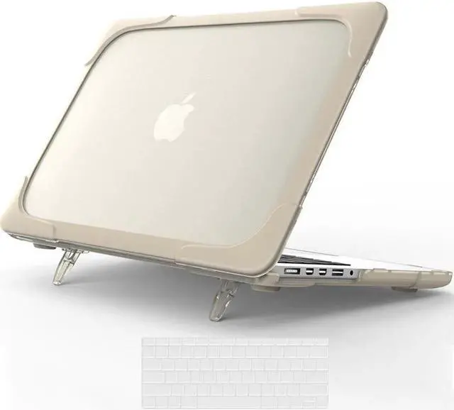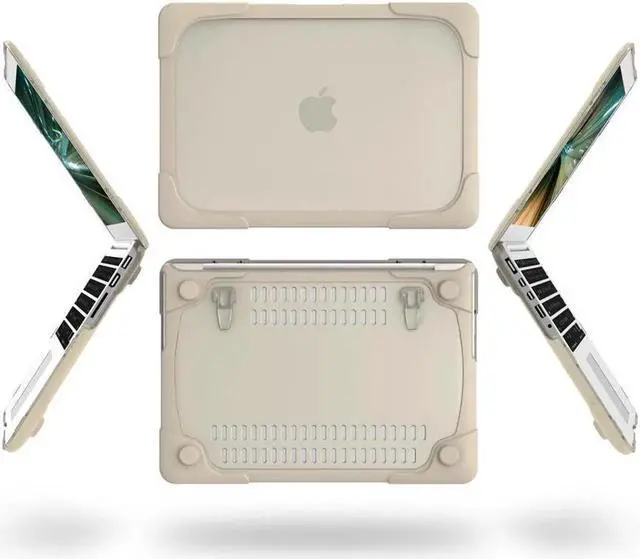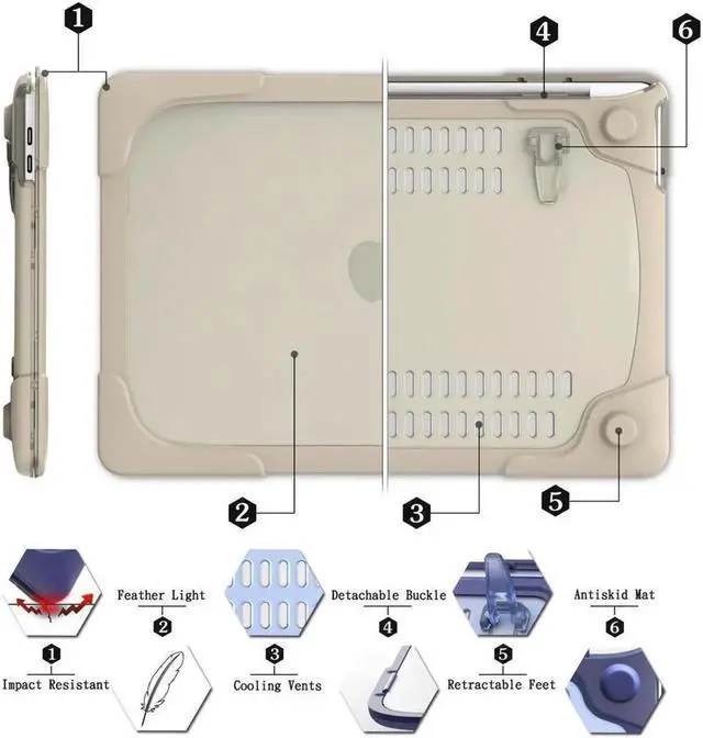 Humanized Design Two rows of bottom ventilation design provides fully heat release, helping your MacBook stay cool. Four anti-slip raised rubberized feet not only improve air ventilation, but also keep your case standing firmly in place.
