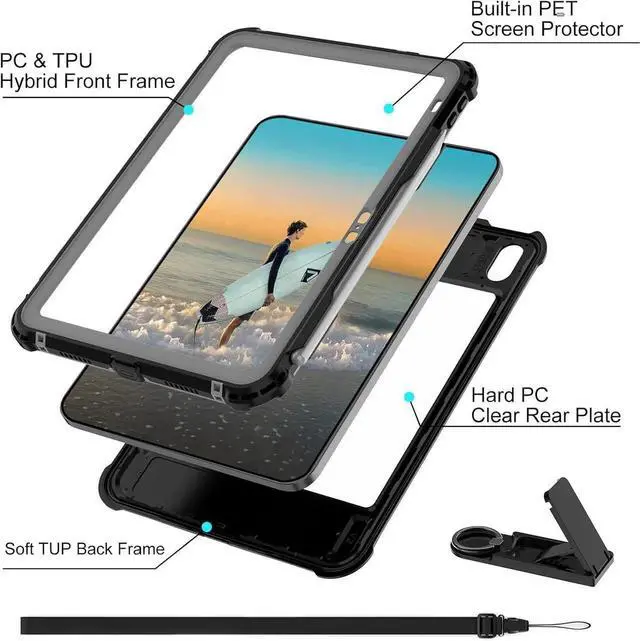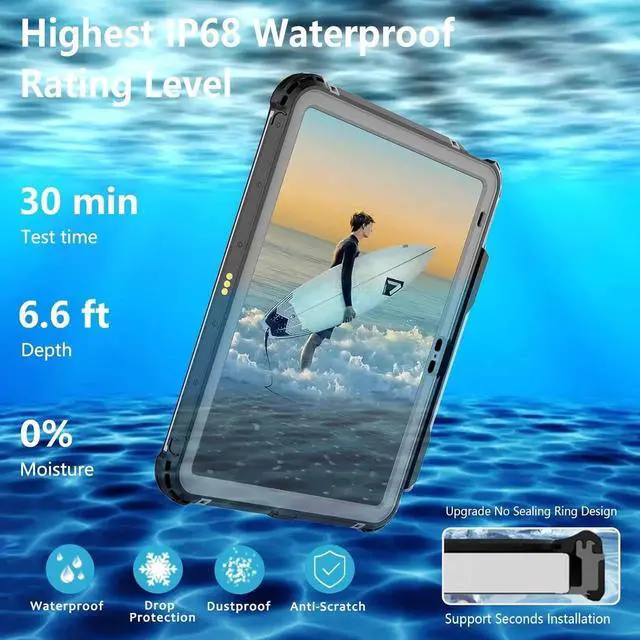 [Certified IP68 Waterproof] for ipad 10th case waterproof exceed the highest waterproof rating--IP68, which can be immersed underwater up to 6.6 feet (2 meters) without getting wet. Also dustproof, snowproof, prevent liquid, fair, or other irritating small particle entering your tablet. Keep it clean and look new