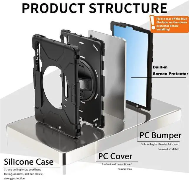 [3-LAYER PROTECTION & SCREEN PROTECTOR] The front and inner cover of Galaxy Tab S8 /S7 11" case made of PC, the back cover made of silicone. Three layers structure design with bulit-in screen protector, the Galaxy Tab S8 /S7 11" case provide full body protection prevent from drops, shocks, bumps, scratches and dirt. No more worries about accidental falls.