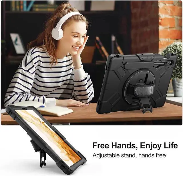 [ROTATING STAND] The Galaxy Tab S8 /S7 11" case built-in sturdy kickstand. Provides multi-angle viewing, offering a pretty convenient use experience for film watching, drawing, working and typing. Ideal for office workers, students, parents or children.