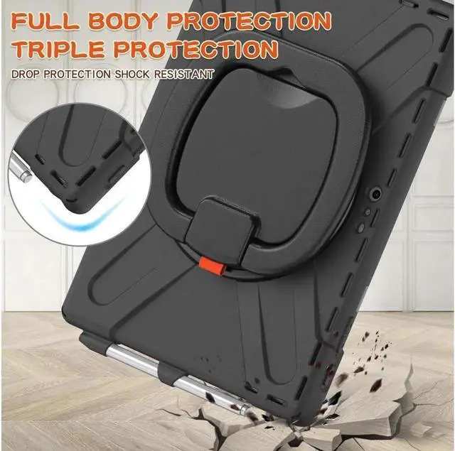 360 degree rotatable kickstand offers optimum position for typing or viewing; Ergonomic and comfortable back handle allows you to grip your tablet securely and steadily with one hand, worry-free from dropping it