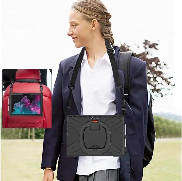 - Adjustable & Detachable shoulder strap: It can be attached for vertical or horizontal display, converts your tablet into an ultra tactical carrier. Ideal for carrying on travel, at work, at school, or outdoors. You can even mount it to a car headrest for back seat entertainment