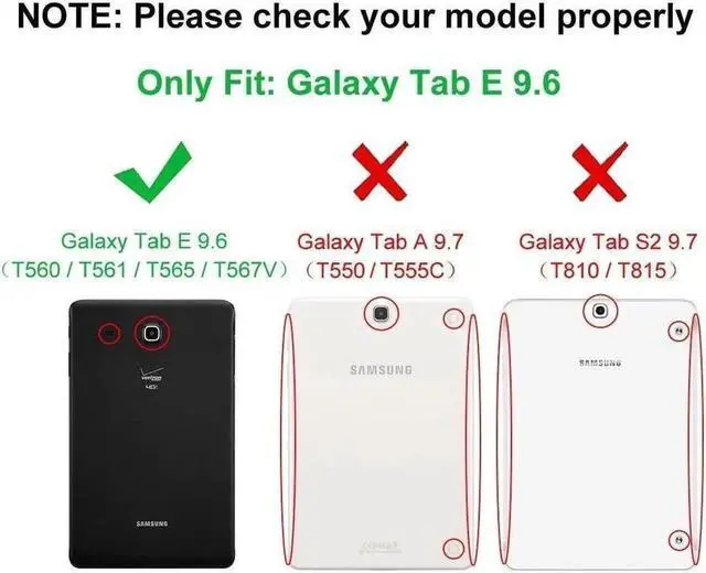 This slimshell case is compatible with Samsung Tab E Wi-Fi / Tab E Nook / Tab E Verizon 9.6 Inch Tablet 2015 released (Model