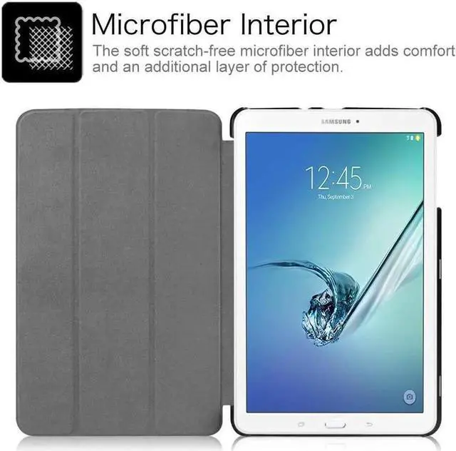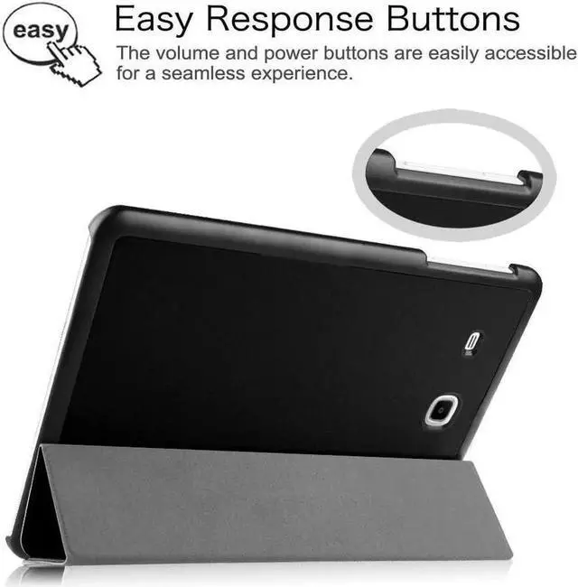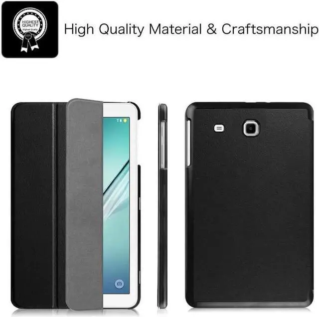 Full Body Protection - Galaxy Tab E 9.6 slim case 2015 made of premium durable synthetic leather exterior and hard PC back. Samsung Tab E 9.6 protective case provides total full body protection against scratches, shocks, fingerprints and dust.