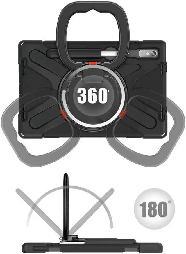 360 degree rotatable kickstand offers optimum position for typing or viewing; Ergonomic and comfortable back handle allows you to grip your tablet securely and steadily with one hand, worry-free from dropping it