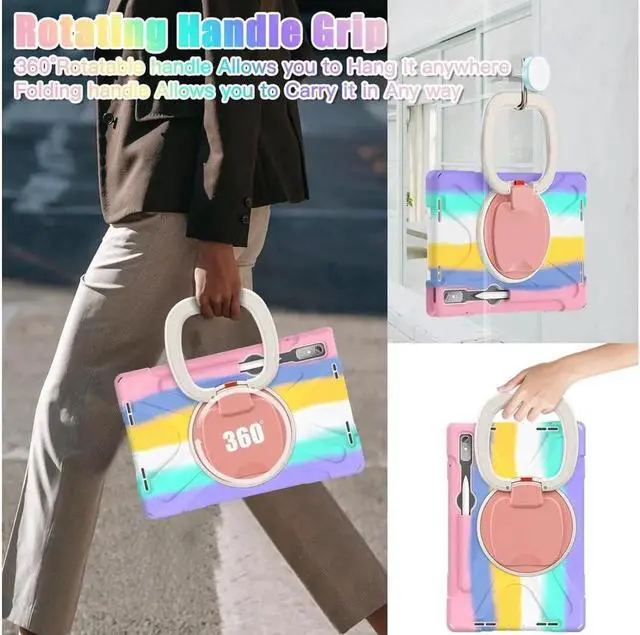 360 degree rotatable kickstand offers optimum position for typing or viewing; Ergonomic and comfortable back handle allows you to grip your tablet securely and steadily with one hand, worry-free from dropping it