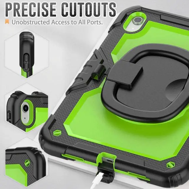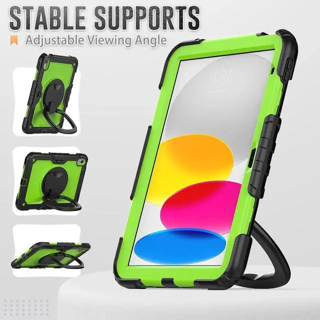 [360 Degree Rotating Kickstand & Hand Strap]: This shockproof case has a 360-degree turntable sturdy kickstand which can support your device from multiple perspectivesthe hand strap is also adjustable, securely and convenient using with one hand when in a meeting or classroom or outdoor activities.