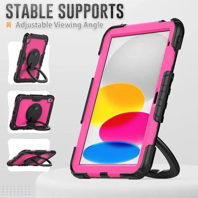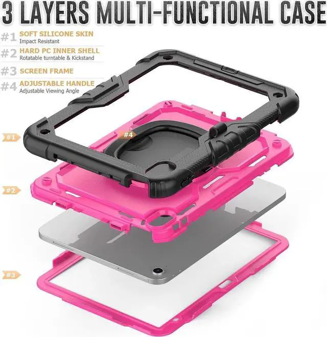 [360 Degree Rotating Kickstand & Hand Strap]: This shockproof case has a 360-degree turntable sturdy kickstand which can support your device from multiple perspectivesthe hand strap is also adjustable, securely and convenient using with one hand when in a meeting or classroom or outdoor activities.