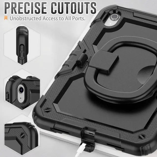 [360 Degree Rotating Kickstand & Hand Strap]: This shockproof case has a 360-degree turntable sturdy kickstand which can support your device from multiple perspectivesthe hand strap is also adjustable, securely and convenient using with one hand when in a meeting or classroom or outdoor activities.
