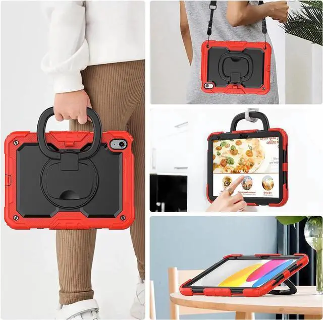 [Adjustable Shoulder Strap]: This case comes with a adjustable detachable shoulder strap, so that you can carry your tablet on neck or shoulder like a bag, or sling it on car head rest.