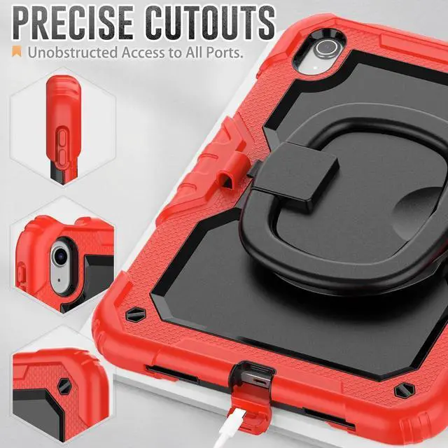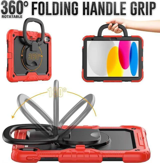 [360 Degree Rotating Kickstand & Hand Strap]: This shockproof case has a 360-degree turntable sturdy kickstand which can support your device from multiple perspectivesthe hand strap is also adjustable, securely and convenient using with one hand when in a meeting or classroom or outdoor activities.