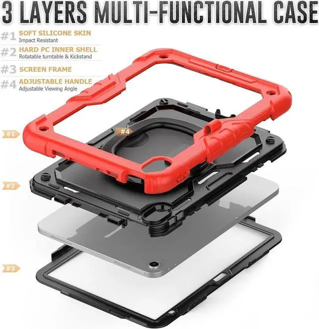 Shockproof + Screen Protector: This Tablet Case is designed with durable anti shock material, soft silicone, hard plastic shell and built-in screen protector. This sturdy case can keep your tablet safe from shock, drop, scratch or accidental damages in daily use.