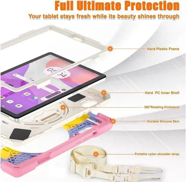 [3-Layer Protection] Made of kid-friendly PC cover and TPU shell, 3-in-1 structure, this Lenovo Tab M9 Case will provide full-body shockproof protection, prevent accidental drops/scratches/slips during daily use for your tablet. [Without screen protector ]