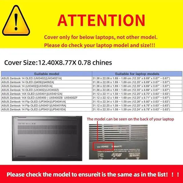 Only Fits for ASUS Zenbook 14 OLED Model (UM3402) [UM3402YA] / Zenbook 14 OLED Model (Q409) [Q409ZA] / Zenbook 14 (UX3402) [UX3402VA] / Zenbook 14 OLED Model (UX3402) (UX3402Z) / Zenbook 14X OLED Model (UX5401) [UX5401ZA] / Zenbook 14XOLED Model (UX5400) UX5400ZB UX5400ZF / Zenbook 14 Flip OLED Model (UP3404) [UP3404VA] / Zenbook 14 FIip OLED Model (UN5401) [UN5401RA] / Zenbook 14 Flip OLED Model (UP5401) [UP5401EA], Not suitable for other models, please check whether your machine is the above model