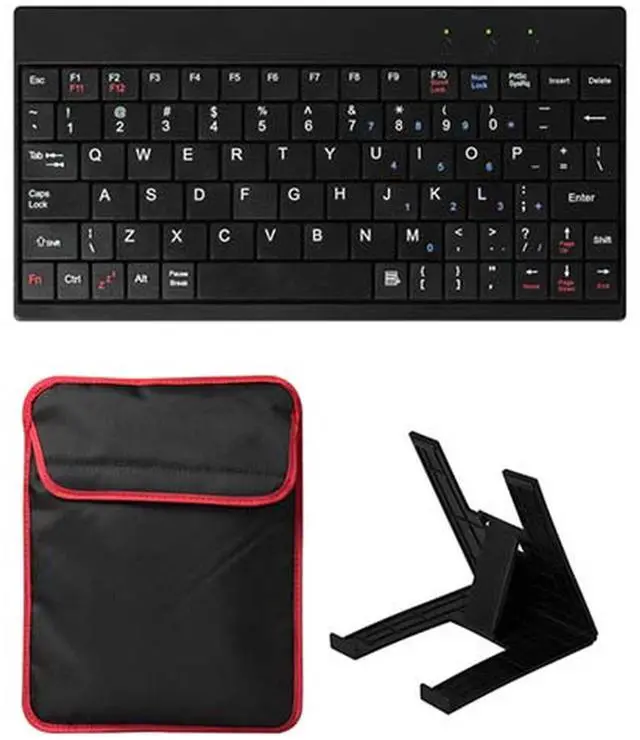 You can get a sleeve storage bag, a mini keyboard and a stand, which allows you to use or store your e-book or tablet PC conveniently. Two layers pocket inside design allows your tablet PC and keyboard to store orderly in the storage bag, and the hook-and-loop design can prevent your tablet PC from scratch, shock and stain. It\'s suitable for most of mini e-book and tablet PC under 10in.