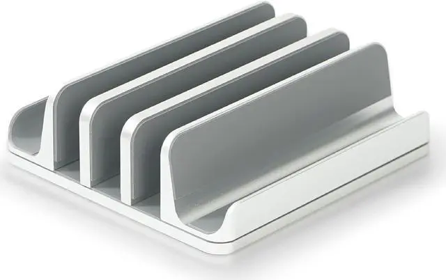Modern Design: Optimize your desk with an aluminum finish vertical laptop stand: cradle and hold your laptop or MacBooks, and mobile devices in style. Save valuable desk space, protect your device from spills, and provide better cooling with a vertical laptop holder.