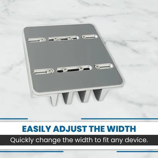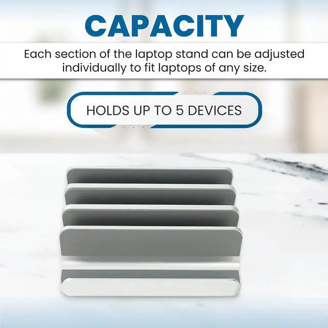 Hold more devices: Dock up to 8 laptops, or tablets or mobile devices in a single stand. Our laptop organizer has three sliding brackets that can be adjusted to secure up to four different laptops, with different thicknesses. A perfect laptop storage rack for multiple laptops.