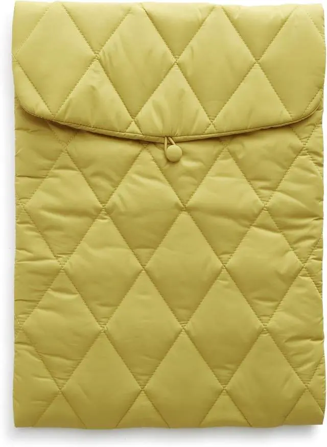 SIZE - Measures 15 inches high and 11 inches wide; accomodates up to a 15 inch laptop or tabletFEATHERWEIGHT - Experience the ultimate blend of softness and performance with super-lightweight diamond-quilted styles; crafted from 100% recycled Featherweight this featherweight fabric is perfect for life on the goDETAILS - Accommodates up to a 15 inch laptop; Button closureCARE - Spot clean with mild detergent and a soft damp cloth rinse thoroughly; lay flat to dry
