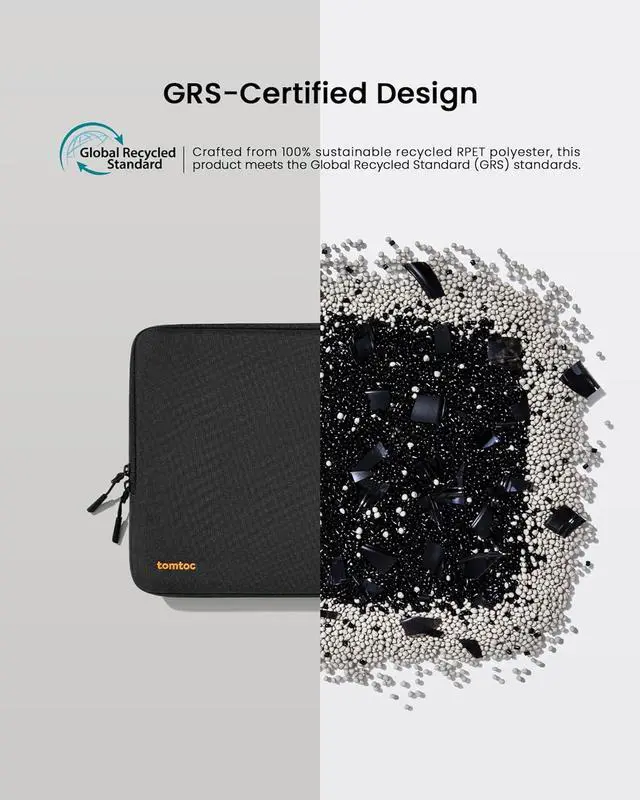 Meets Performance: The premium spill-resistant recycled fabrics YKK zippers sophisticated interline-designed soft lining and craftmanship meet the highest standard for a MacBook sleeve. Insisting on human-centered design philosophy we use recycled fabrics and have consumed hundreds of thousands of discarded plastic bottles to save our planetConvenient