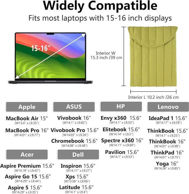 Wide Compatibility: In 15-16 inch capacity we are compatible with all 15 inch and most 15.6 inch laptops. Compatible with MacBook Pro M2 M1 Max 2023 MacBook Air. It can be Macbook case laptop cover HP laptop cover Contact laptop cover.
