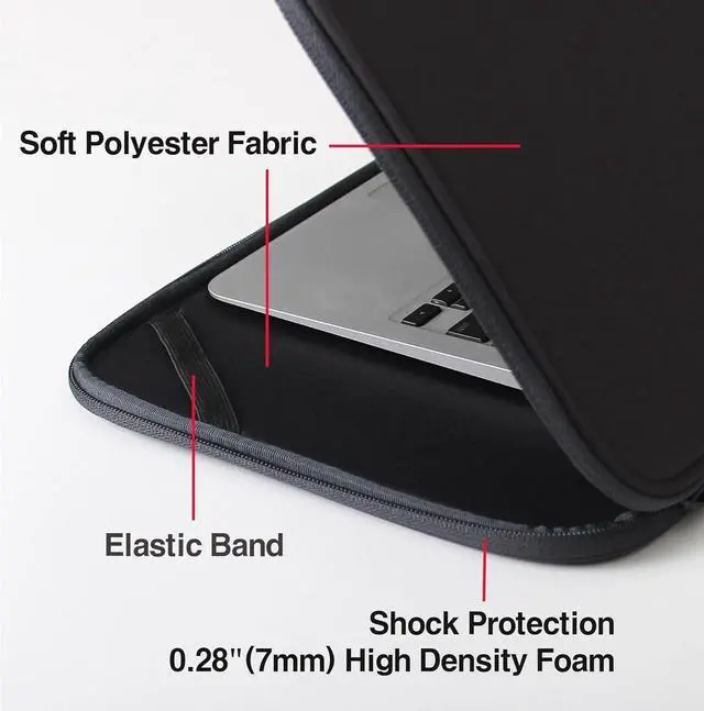 External: 14.9 x 10 x 0.9 inches. (For 15.6 -inch Chromebooks use a 16-inch laptop sleeve)CONVENIENCE AND MATERIALS - The slim and lightweight design makes it easy to carry on its own or slip into a shoulder bag or backpack. The exterior and interior are made from soft fabric providing a smooth touch and excellent protection against laptop scratches. It also features a layer of high-density foam in the middle for added impact protection. ENHANCED SAFETY - The edges of the laptop case are reinforced with sturdy materials providing 360-degree protection to your laptops sides from external impacts and scratches. THE INNTZONE ADVANTAGE - Use Your Laptop Without Removing It from the