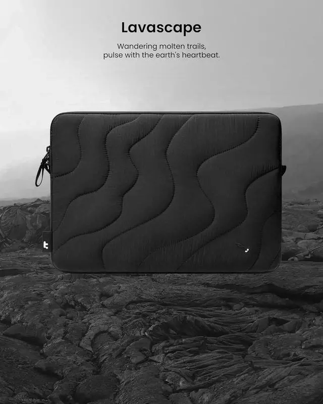 Terra Elegance: Crafted from recycled materials this puffer laptop sleeve combines elegance with sustainability. Its distinctive contour line design creates timeless aesthetics perfectly tailored to embrace your cherished
