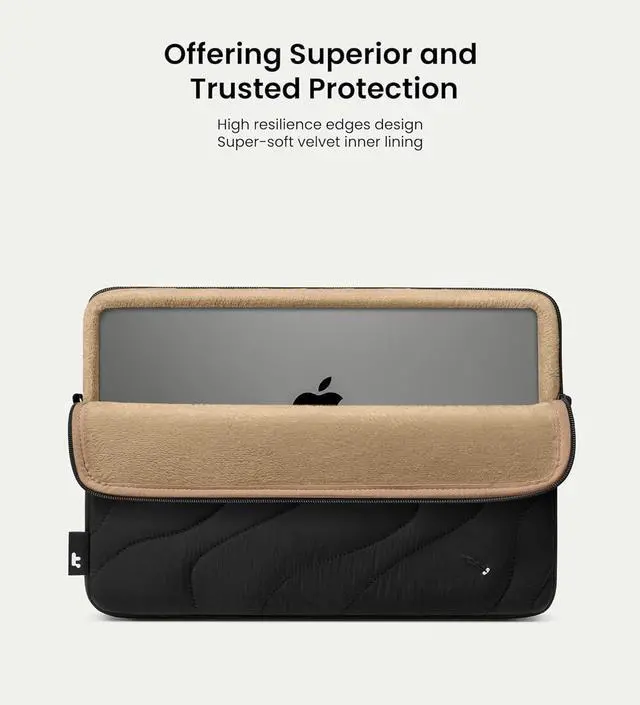 Laptop Protection: Equipped with CornerArmor X4 Technology this puffy laptop sleeve ensures your MacBook is protected from the toughest situations and durable enough to combat falls or shocks on your way. The blend of eco-friendly polyester cotton fabric with a super-soft velvet inner lining emphasizes the sleeve's resilience offering unparalleled safety for your device with Earth's tender songWarranty
