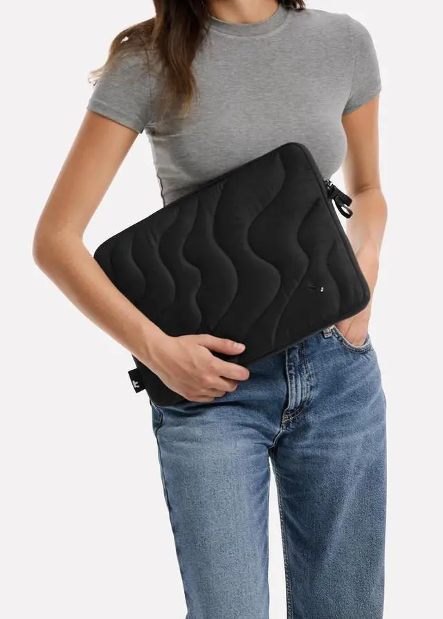 Tenderness & Durability: Imagine your device enveloped in our quilted design sleeve crafted with a puff-like softness yet firm in structure. This sleeve resembling a plush cushion offers your tech the perfect blend of tenderness and robust protection. It slides smoothly into larger bags always holding its shape and provides a snug secure fit for your device. Experience the unique combination of tenderness and durabilitySuperior