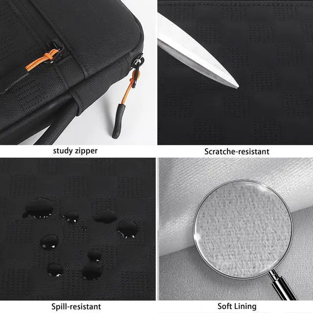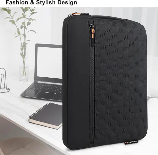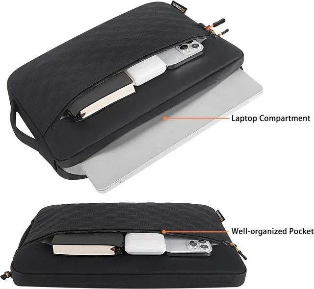 (Internal: 15.94 x 11.22 x 0.98 ). Your 16-inch MacBook Pro or LG Gram it deserves premium protection. HEAVY-DUTY ALL-AROUND PROTECTION You paid a premium for your laptop; protect it like one. The rugged waterproof material and high-density padding create a fortress against impacts pressure and weather so you can work or create with total peace of mind. A HANDLE THAT CAN HANDLE THE WEIGHT Let's be real 16-inch laptops are heavy. Our extra-sturdy padded handle makes carrying your powerhouse laptop actually manageable from your desk to your next destination. PLUSH INTERIOR PREMIUM EXPERIENCE That sleek aluminum unibody deserves to be treated with care. The ultra-soft brushed interior lining is guaranteed scratch-free while the robust YKK-style zipper offers buttery-smooth reliable operation. PROFESSIONAL-GRADE DURABILITY This is the sleeve for those who mean business. The sleek black aesthetic commands respect in any boardroom while the rugged construction is built to withstand the rigors of travel and daily use.