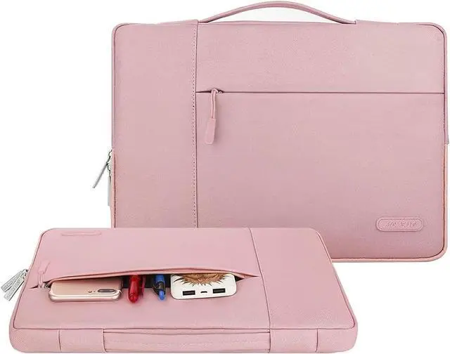 External Dimensions: 14.37 x 0.79 x 10.63 inches (L x W x H). The front horizontal side pocket dimensions: 10.24 x 9.84 inches (L x W). The back vertical side pocket dimensions: 9.84 x 10.04 inches (L x W). The laptop sleeve with pocket outer polyester fabric of the case enable you to carry your laptop / notebook / Ultrabook computer in a uniquely sleek style. This protective carrying sleeve case cover bag with pocket is ideal for you to take your laptop out. Features internal upgraded shock resistant bubble foam padding layer better protect your valuable laptop from accidental scratches. You can alter how to carry depending on your needs. Allows you to switch between a laptop briefcase and laptop sleeve bag. Slim and lightweight; does not bulk your laptop up and can easily slide into your briefcase backpack or other bag. Extendable handle design makes it to carry your laptop around in comfort you can also tuck away the handle. Compatible with MacBook Pro 14 2025-2021 M5 M4 M3 M2 M1 A3434 A3112 A3185 A3401 A2918 A2992 A2779 A2442 compatible with MacBook Air 13 2017-2010 A1369 A1466 compatible with MacBook Pro 13 A1425 A1502 A1278 2008-2015; Compatible with Surface Book 3/2/1 13.5 / Surface Laptop 6/5/4/3 13.5 /Surface Laptop 13.8; Compatible with Latitude/Chromebook 13.3; Compatible with HP Elitebook/Spectre/Envy/Stream 13.3; Compatible with IdeaPad/ThinkPad Yoga 13.3; Compatible with Chromebook Spin 13.3.