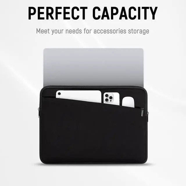 EXTRA STORAGE SPACE: The front pocket of this computer case is thoughtfully designed to store a variety of accessories. Whether its your charger mouse pens or earphones this additional pocket offers easy access and secure storage. It keeps your essentials neatly organized and readily available making it the perfect solution for convenient on-the-go laptop protection.