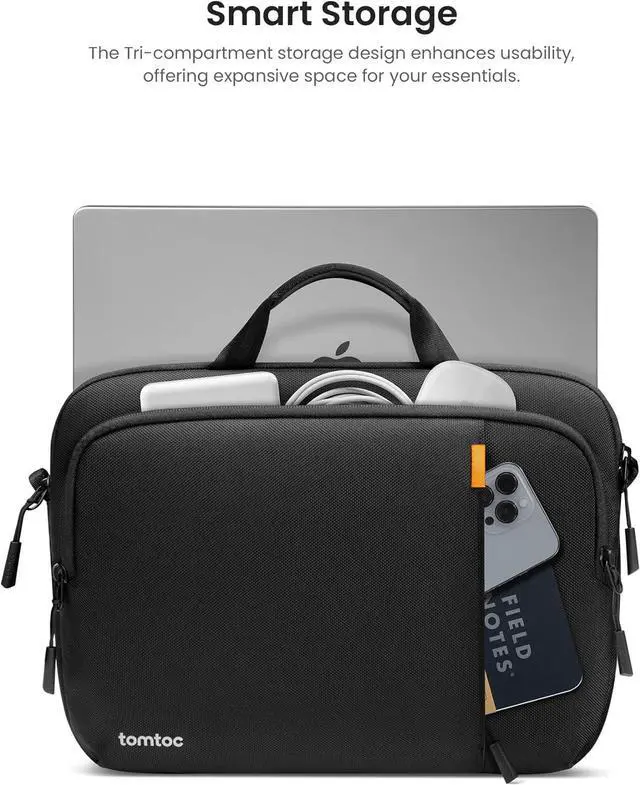 Enhanced Laptop Protection: The Defender-A30 laptop shoulder bag provides all-around military-grade protection tailored specifically for your MacBook Air/Pro 13/ 13.3 /14 inch. Featuring 4 cornerArmor protectors high resilience edges and a sophisticated interline-designed soft velvet lining this sleeve carrying case and shoulder bag ensures your MacBook is shielded from bumps dents scratches and water spillsSmart Tri-compartment