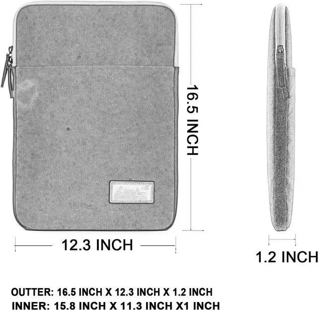 Inner dimension: 15.8 inch (L) x 11.3 inch (W) x 1 inch (D). Can Hold 15.6 inch to 16 inch laptopBig Pocket on the front with zipper can hold mouse power mobile phone tablet pc and so onSoft and fluffy interior prevent computer scraping