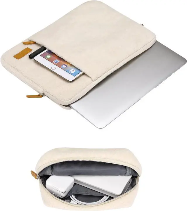 External dimensions: 14.21 x 10.43 x 0.98 inches (L x W x H). The front vertical side pocket dimensions: 9.25 x 7.95 inches (L x W). The additional small pouch bag dimensions: 7.24 x 5.23 x 2.63 inches (L x W x H). Made with soft fluffy plush polyester material a top opening zipper gliding smoothly and allows convenient access to your device. Features a polyester foam padding layer and fluffy fleece fabric lining. Protect your laptop from bump shock and accidental scratches. Extra pocket in front & additional small storage pouch bag provide enough space to keep mouse earphone pens and notepads offering added convenience. The small case is same color as the big sleeve bag harmony and stylish. This durable protective carrying sleeve case cover bag with small pouch is ideal for you to take your laptop out. Slim and lightweight; does not bulk your laptop up and can easily slide into your briefcase backpack or other bag. Top-loading zipper on the sleeve glides smoothly and allows convenient access to your laptop computer. The bag is perfect for working traveling daily use and business travel. Compatible with MacBook Pro 14 2025-2021 M5 M4 M3 M2 M1 A3434 A3112 A3185 A3401 A2918 A2992 A2779 A2442 compatible with MacBook Air 13 2017-2010 A1369 A1466 compatible with MacBook Pro 13 A1425 A1502 A1278 2008-2015; Compatible with Surface Book 3/2/1 13.5 / Surface Laptop 6/5/4/3 13.5 /Surface Laptop 13.8; Compatible with Latitude/Chromebook 13.3; Compatible with HP Elitebook/Spectre/Envy/Stream 13.3; Compatible with IdeaPad/ThinkPad Yoga 13.3; Compatible with Chromebook Spin 13.3.