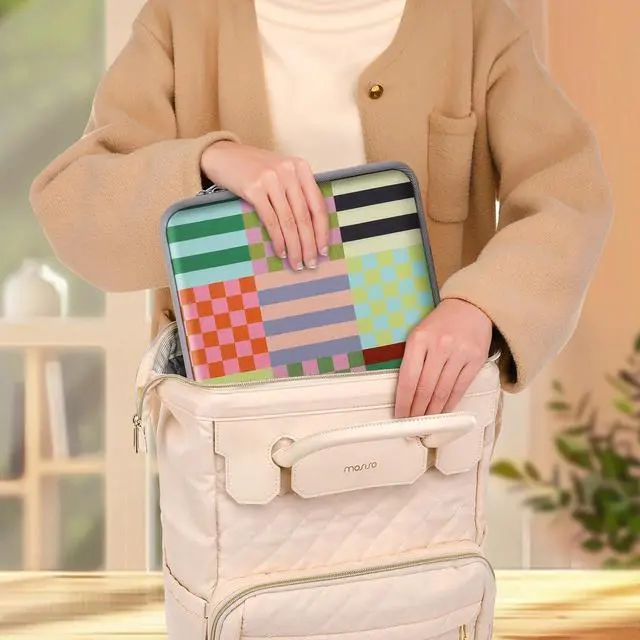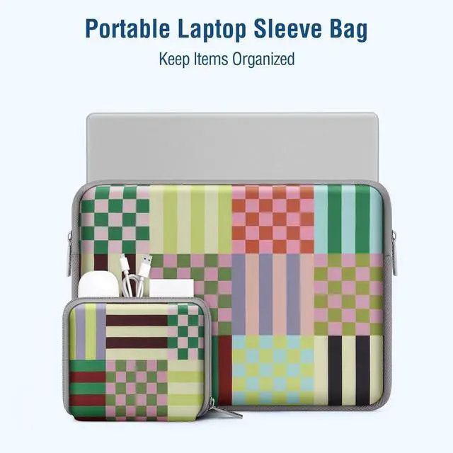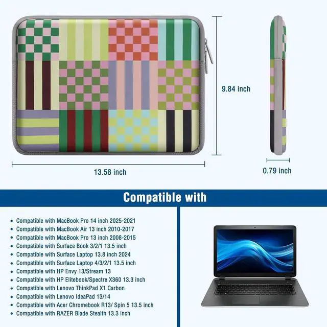 H); external dimension is: 13.58 x 9.84 x 0.79 inch (L x W x H). The additional small pouch bag dimension is: 5.51 x 4.72 x 0.59 inch (L x W x H). Features a colorful stripes & checkered neoprene foam padding layer and fluffy fleece fabric lining for bump and shock absorption and protection of your computer from accidental scratches. Additional small storage pouch bag for you to storage mouse and earphone. Same color as the big sleeve bag harmony and stylish. This protective carrying sleeve case cover bag with small pouch is ideal for you to take your laptop out. Slim and lightweight; does not bulk your laptop up and can easily slide into your briefcase backpack or other bag. Special retro flower design laptop sleeve bag to show your personality. Compatible with MacBook Pro 14 2025-2021 M5 M4 M3 M2 M1 A3434 A3112 A3185 A3401 A2918 A2992 A2779 A2442 compatible with MacBook Air 13 2017-2010 A1369 A1466 compatible with MacBook Pro 13 A1425 A1502 A1278 2008-2015; Compatible with Surface Book 3/2/1 13.5 / Surface Laptop 6/5/4/3 13.5 /Surface Laptop 13.8; Compatible with Latitude/Chromebook 13.3; Compatible with HP Elitebook/Spectre/Envy/Stream 13.3; Compatible with IdeaPad/ThinkPad Yoga 13.3; Compatible with Chromebook Spin 13.3.