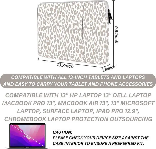 Slim and lightweight it doesn't add weight to your laptop when carried and fits easily into a backpack briefcase or other everyday items. Great of travel school or business. Exclusive Graphic DesignThis Laptop Sleeve Bag 13- 13.3 inch engraved with delicate leopard print and cute cow print can fully protect your laptop while making your handbag more stylish and adding color to your life you can choose your preference according to your favorite pattern. Package and Premium ServiceBuy this item the package contains 1* 13- 13.3 Laptop Sleeve Bag with great versatility; high quality material can protect your laptop from splashes scratches.