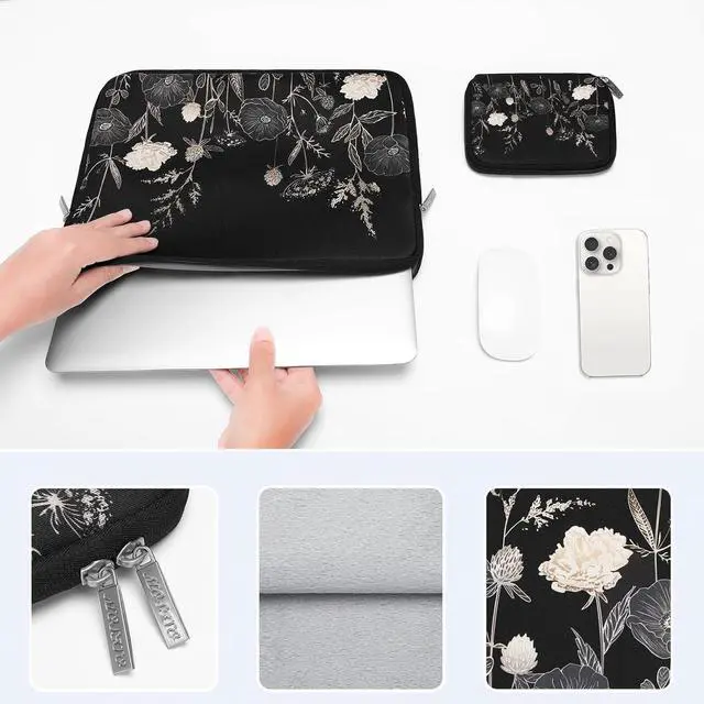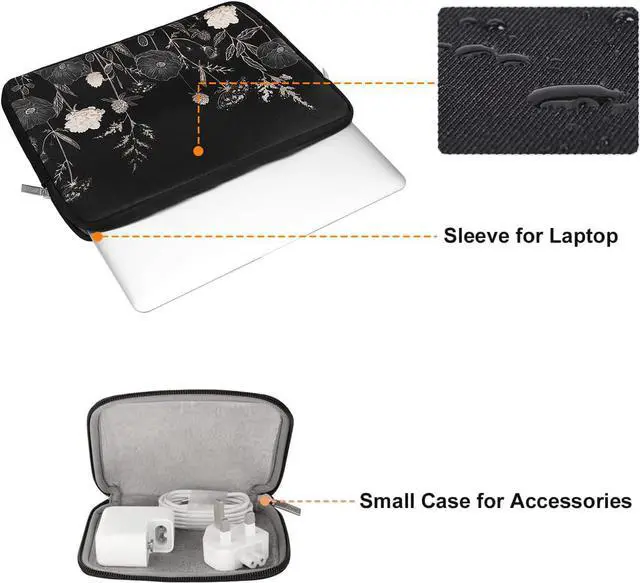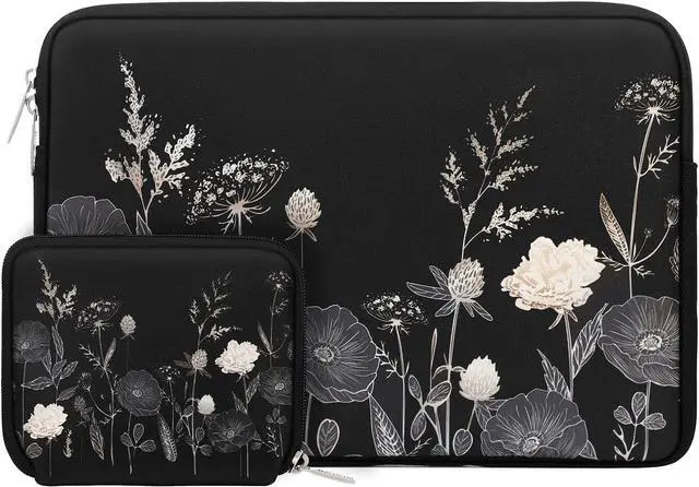 H); external dimension is: 6.3 x 0.59 x 5.31 inch (L x W x H). Features a retro flower neoprene foam padding layer and fluffy fleece fabric lining for bump and shock absorption and protection of your computer from accidental scratches. Additional small storage pouch bag for you to storage mouse and earphone. Same color as the big sleeve bag harmony and stylish. This protective carrying sleeve case cover bag with small pouch is ideal for you to take your laptop out. Slim and lightweight; does not bulk your laptop up and can easily slide into your briefcase backpack or other bag. Special retro flower design laptop sleeve bag to show your personality. Compatible with MacBook Pro 14 2025-2021 M5 M4 M3 M2 M1 A3434 A3112 A3185 A3401 A2918 A2992 A2779 A2442 compatible with MacBook Air 13 2017-2010 A1369 A1466 compatible with MacBook Pro 13 A1425 A1502 A1278 2008-2015; Compatible with Surface Book 3/2/1 13.5 / Surface Laptop 6/5/4/3 13.5 /Surface Laptop 13.8; Compatible with Latitude/Chromebook 13.3; Compatible with HP Elitebook/Spectre/Envy/Stream 13.3; Compatible with IdeaPad/ThinkPad Yoga 13.3; Compatible with Chromebook Spin 13.3.