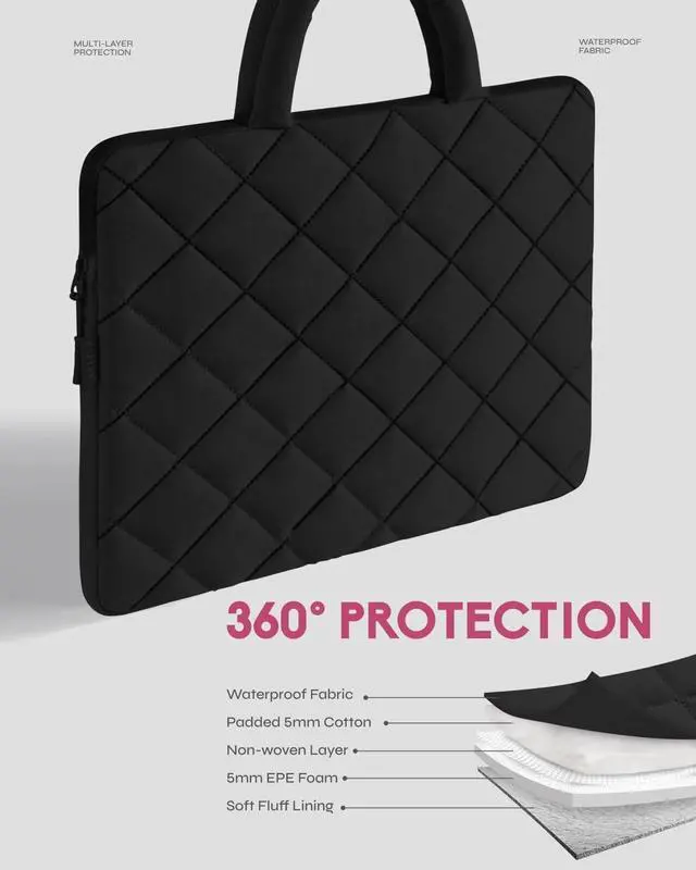 Lightweight & Fashionable Design: This laptop sleeve is incredibly light at just 0.6 lbs and features a stylish cloud-like diamond quilted design making it easy and fashionable to carry ideal for daily commutes or as a macbook sleeveSuperior 360°