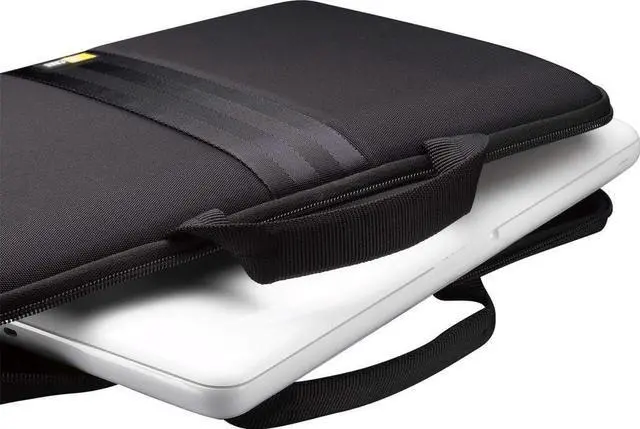 Molded EVA sleeve holds a laptop with up to a 13.3 screenA unique seat belt style keep you looking good while on the moveThick quilted padding keeps your device protected and snugly in place to prevent it from sliding aroundClamshell design and integrated airflow channels allow you to use your laptop while still in the sleeve without the risk of overheatingPadded carry handles for comfortable transportation